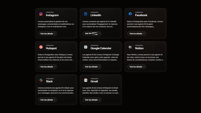 Cette compatibilité élargie fait clairement de Limova une plateforme tout-en-un pour automatiser vos tâches sans friction.